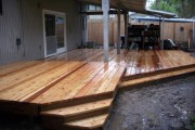 This customer in Milwaukie, Oregon needed their old cedar deck replaced as it was getting rotten. The framing wasn’t pressure treated and the hot tub deck was sinking in the ground. We demolished the old tub and threw it away because it leaked and wasn’t worth salvaging. We rebuilt the decks a little bit smaller and reinforced the hot tub deck in case the customer decided to get a new tub down the line.