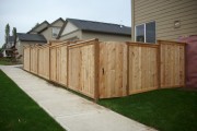 We built this fence in Gresham around a new house. We stair stepped the side going down hill for a nice effect, we built a large double gate on the other side of the house so the customer’s RV could be pulled in, and we stained it with Messmer’s natural cedar stain.