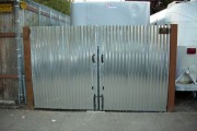 Here is a gate we built for a new little restaurant called, “The Grilled Cheese Grill” on Alberta street. They had already built some fencing using corrugated metal and needed a gate to match. They wanted a large gate and wanted to make sure it didn’t lean like the fence, so they called the professionals.