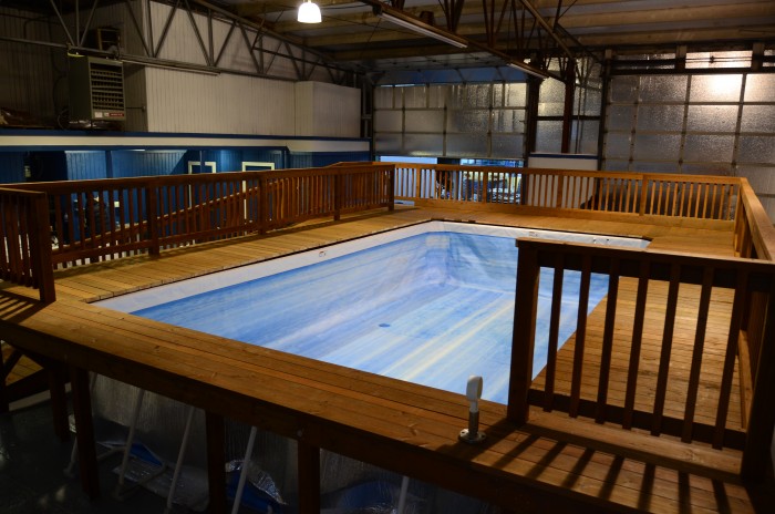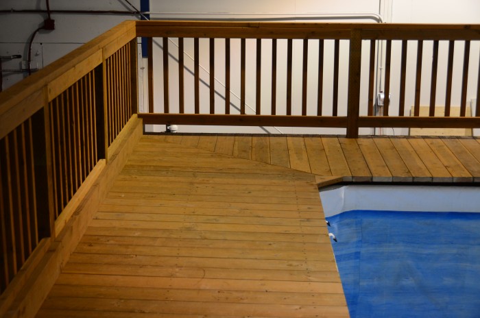 This was an interesting project because it was for a pool that was to be used for providing therapy and training for dogs. This customer has a business using water therapy to help rehabilitate injured dogs. She recently moved her business to this warehouse in Northeast Portland and needed a deck around the pool. We used all pressure treated and outdoor wood for the project and she is now ready to be back in business!