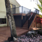 This deck rebuild used Trex Havana Gold decking and a black Trex Signature aluminum railing. Its a great combination for a modern day deck!