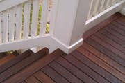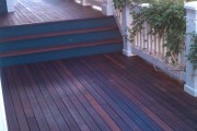 These decks were attached to two houses that were built about six years earlier. They were designed and built by the same architect and as such were both in need of their third staining. Most decks need stained every year in Portland if you want to keep them looking nice, as the amount of rain we get wears stains out quickly. We also repainted the railings, re-stained one front door, and stripped and re-stained a garden bench. The end result was several decks that looked good as new!
