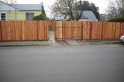 This customer lives in North Portland and was looking for a little more privacy, security, and beauty for their home. They had an existing chain link fence which they did not like so we removed it and built them this classic dog ear cedar fence. They had an existing drive way gate that was in need of repair so we reused the hardware and attached cedar fence boards to it so that it matched the new fence. The result was a functional gate that could be locked and a beautiful addition to their home!