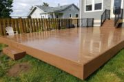 Timbertech Brown Oak Terrain deck by Deckmasters | Lighted composite decks, Railings Timbertech Brown oak decking Trex Reveal aluminum railing Lighted deck