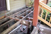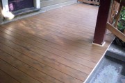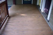 This is a commercial location in NW Portland. The original porch had become rotten and had holes in the flooring. We tore out the old and installed Timbertech Teak color composite decking. Teak is one of our favorite colors of composite because it has a nice contrast between the main color and the dark streaks on the surface.