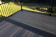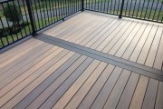 This beautiful deck has Timbertech’s tigerwood decking with a mocha border and an aluminum Trex railing. It’s hard to get photos to do it justice but you can see how the boards vary in color to give it more of a real hardwood appearance. This is a top of the line composite deck and it shows!
