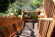 This deck is made with Timbertech’s Walnut composite decking. It is nice for the person who likes the look of a dark hardwood but the longevity of composite. We went with a custom cedar railing style here that the customer really liked.