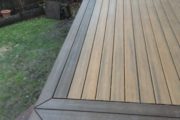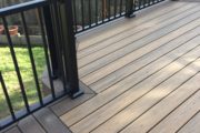 This second story deck replacement in Lake Oswego has Trex Havana Gold decking with a Spiced rum border and a black Trex Signature aluminum railing. It is a sharp looking deck that will last a lifetime and have extremely low maintenance.