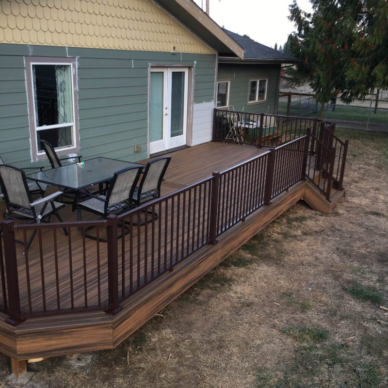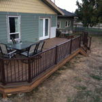 This customer needed three decks, so we did small medium and large sizes for each of their back doors. We used Trex Havana gold decking and the Trex bronze color Reveal railing.