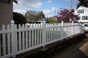 Here is a nice vinyl picket fence. It is the longest lasting type of fence you can buy. It requires no maintenance other than cleaning and will last for a lifetime. It is the best value for a picket fence hands down.